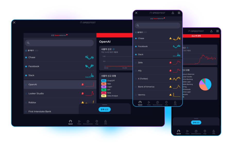 중단 문제 및 연결 문제 추적으로 세계에서 가장 인기 있는 Downdetector를 이용하여 자주 이용하는 서비스에 발생하는 문제를 실시간으로 감독하고 보고하세요.